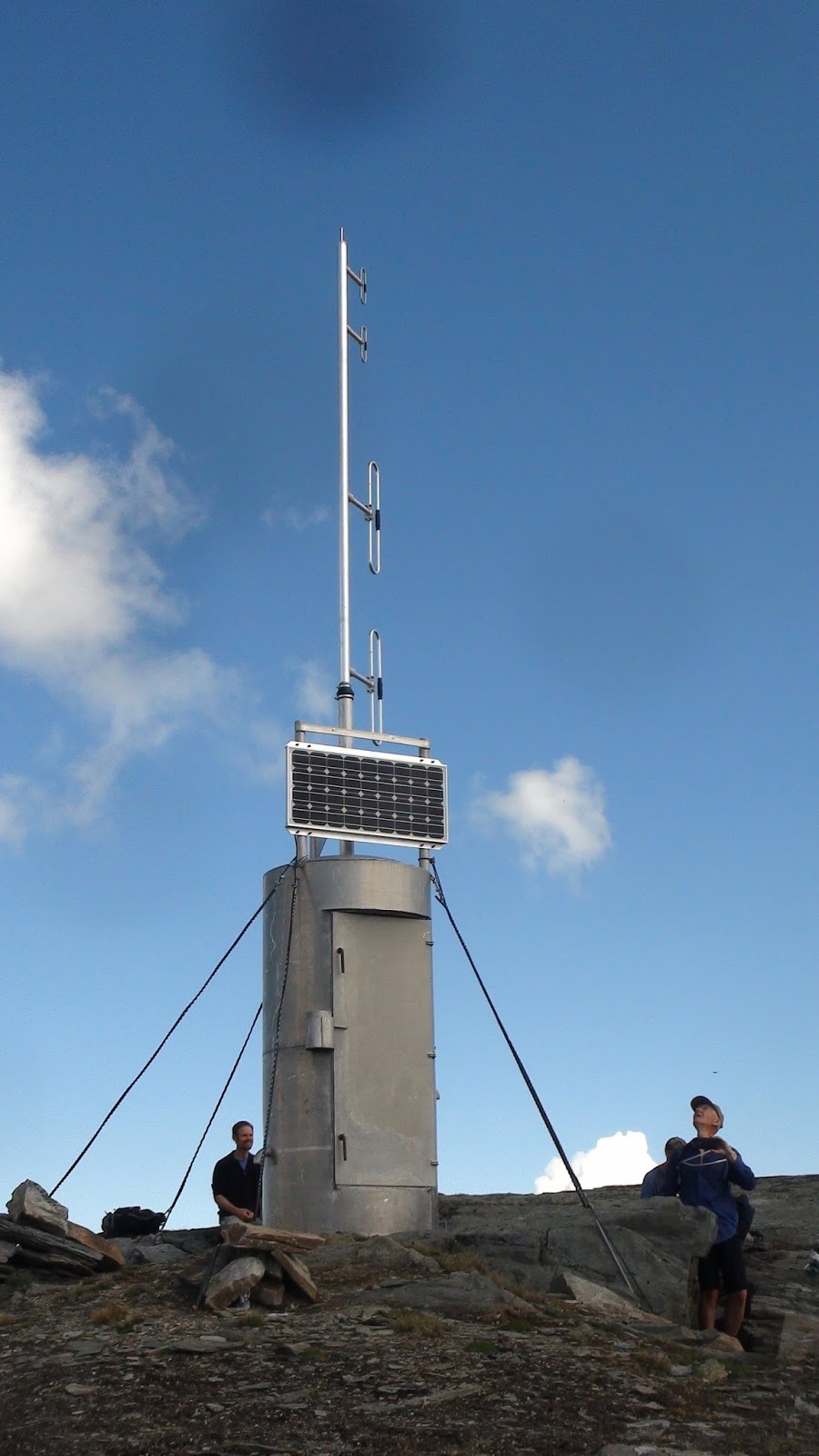 The one you see in the photo is on the peak just south and east of Mt. Lucille. I don’t know what signals this one receives and transmits, but none of us hikers got fried by the waves.